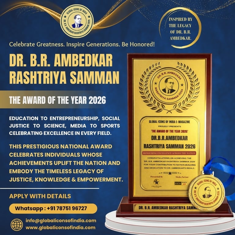 The Dr. B.R. Ambedkar Rashtriya Samman 2026 is a national-level recognition presented to outstanding individuals whose work reflects Babasaheb’s vision of justice, equality, knowledge, and empowerment. This award is not just a title — it is a symbol of gratitude to changemakers who inspire the nation through their dedication, innovation, and social impact.