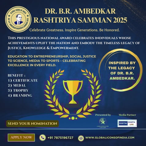 The Dr. B.R. Ambedkar Rashtriya Samman 2025 is a national-level recognition presented to outstanding individuals whose work reflects Babasaheb’s vision of justice, equality, knowledge, and empowerment. This award is not just a title — it is a symbol of gratitude to changemakers who inspire the nation through their dedication, innovation, and social impact.
