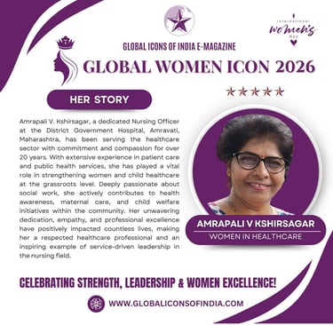 Amrapali V. Kshirsagar, a dedicated Nursing Officer at the District Government Hospital, Amravati, Maharashtra, has been serving the healthcare sector with commitment and compassion for over 20 years. With extensive experience in patient care and public health services, she has played a vital role in strengthening women and child healthcare at the grassroots level. Deeply passionate about social work, she actively contributes to health awareness, maternal care, and child welfare initiatives within the community. Her unwavering dedication, empathy, and professional excellence have positively impacted countless lives, making her a respected healthcare professional and an inspiring example of service-driven leadership in the nursing field.
