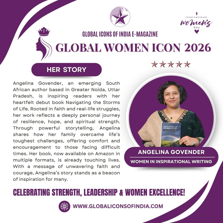 Angelina Govender, an emerging South African author based in Greater Noida, Uttar Pradesh, is inspiring readers with her heartfelt debut book Navigating the Storms of Life. Rooted in faith and real-life struggles, her work reflects a deeply personal journey of resilience, hope, and spiritual strength. Through powerful storytelling, Angelina shares how her family overcame life’s toughest challenges, offering comfort and encouragement to those facing difficult times. Her book, now available on Amazon in multiple formats, is already touching lives. With a message of unwavering faith and courage, Angelina’s story stands as a beacon of inspiration for many.