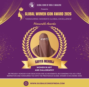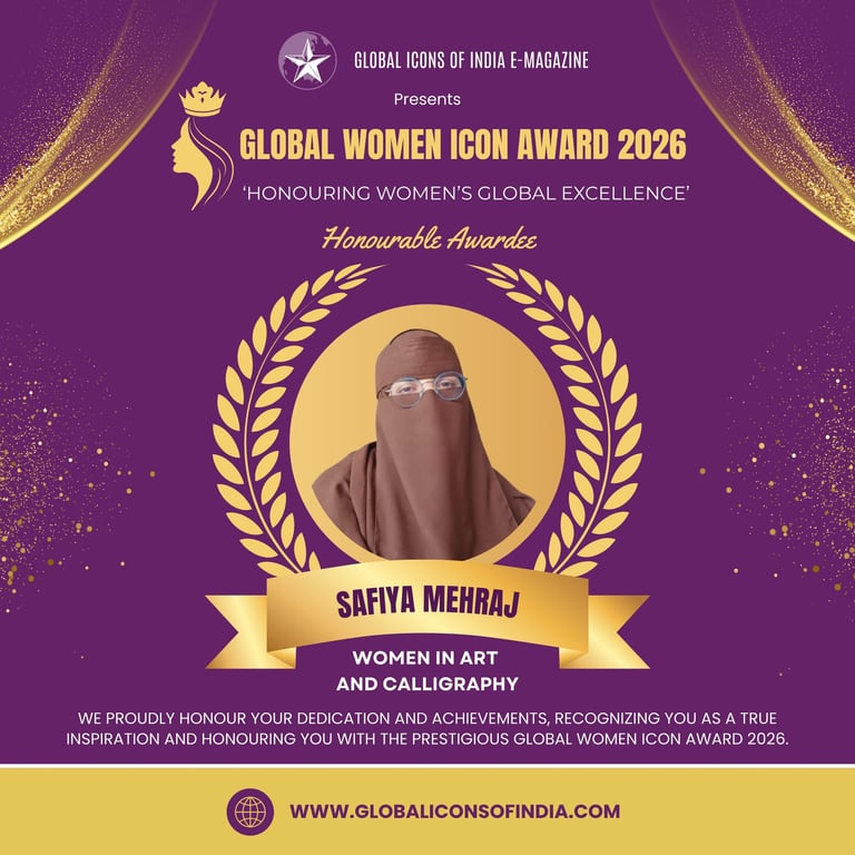 Dr. Safiya Mehraj, a distinguished scholar and artist from Srinagar, Jammu & Kashmir, represents a rare blend of scientific excellence and artistic brilliance. A Gold Medalist in Clinical Biochemistry from the University of Kashmir, she is currently pursuing her Ph.D. at CSIR–Indian Institute of Integrative Medicine (IIIM), focusing on Clinical Microbiology and PK/PD research. Alongside her scientific career, she is widely recognized for her remarkable work in art and calligraphy, pioneering the concept of NeuroArt that transforms complex biomedical ideas into powerful visual expressions. Her artwork gained international recognition as a Top 10 Global Finalist at the RANZCR 90th Anniversary Art Contest in Melbourne, Australia. Through science, art, and intellectual leadership, she continues to inspire innovation, creativity, and global impact.