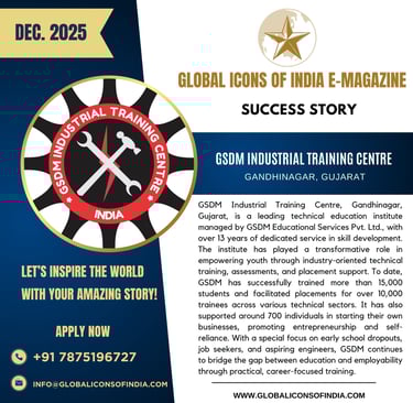 GSDM Industrial Training Centre, Gandhinagar, Gujarat, is a leading technical education institute managed by GSDM Educational Services Pvt. Ltd., with over 13 years of dedicated service in skill development. The institute has played a transformative role in empowering youth through industry-oriented technical training, assessments, and placement support. To date, GSDM has successfully trained more than 15,000 students and facilitated placements for over 10,000 trainees across various technical sectors. It has also supported around 700 individuals in starting their own businesses, promoting entrepreneurship and self-reliance. With a special focus on early school dropouts, job seekers, and aspiring engineers, GSDM continues to bridge the gap between education and employability through practical, career-focused training.